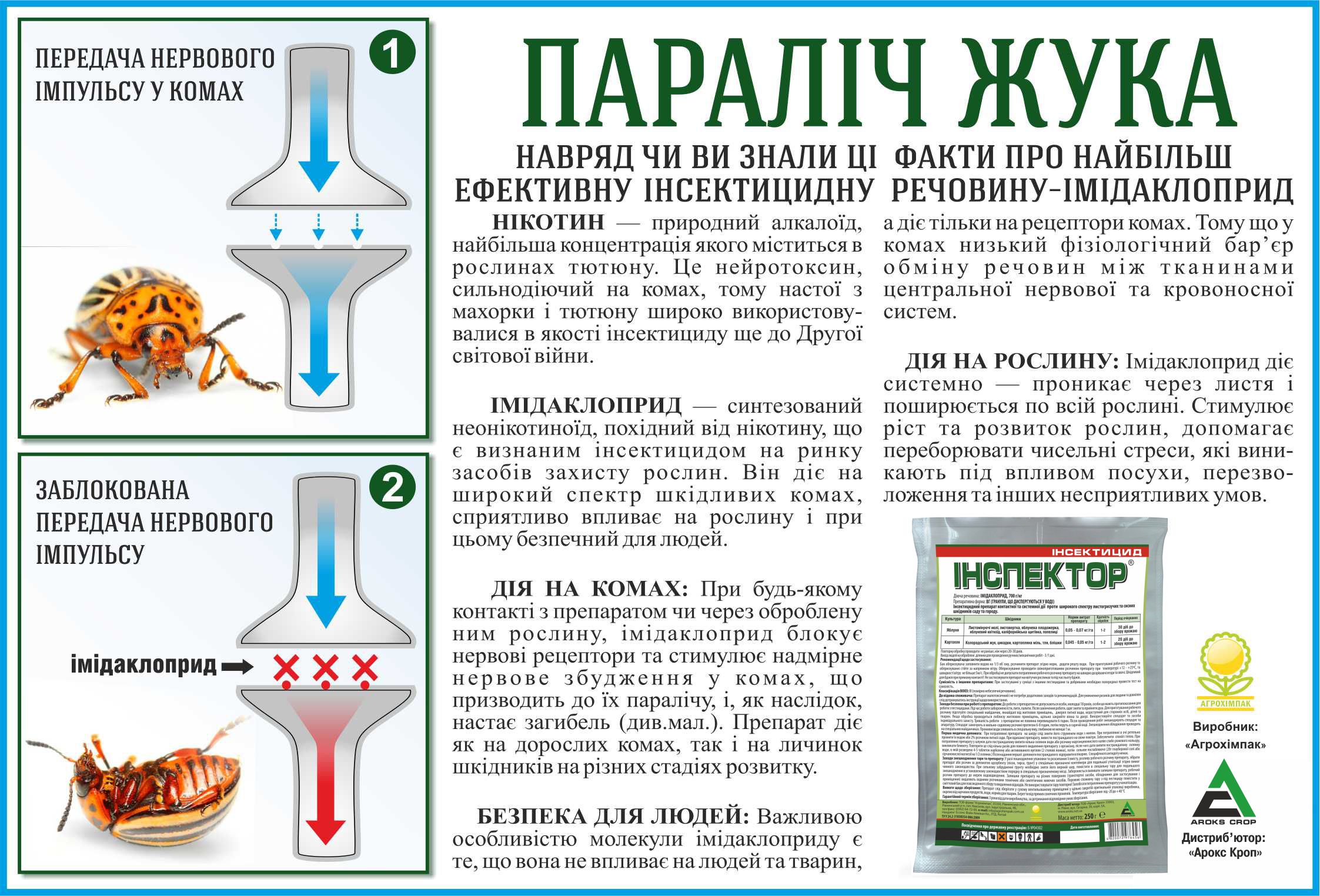Імідаклоприд — синтезований неонікотиноїд, похідний від нікотину, що є визнаним інсектицидом на ринку засобів захисту рослин. Він діє на широкий спектр шкідливих комах, сприятливо впливає на рослину і при цьому безпечний для людей.