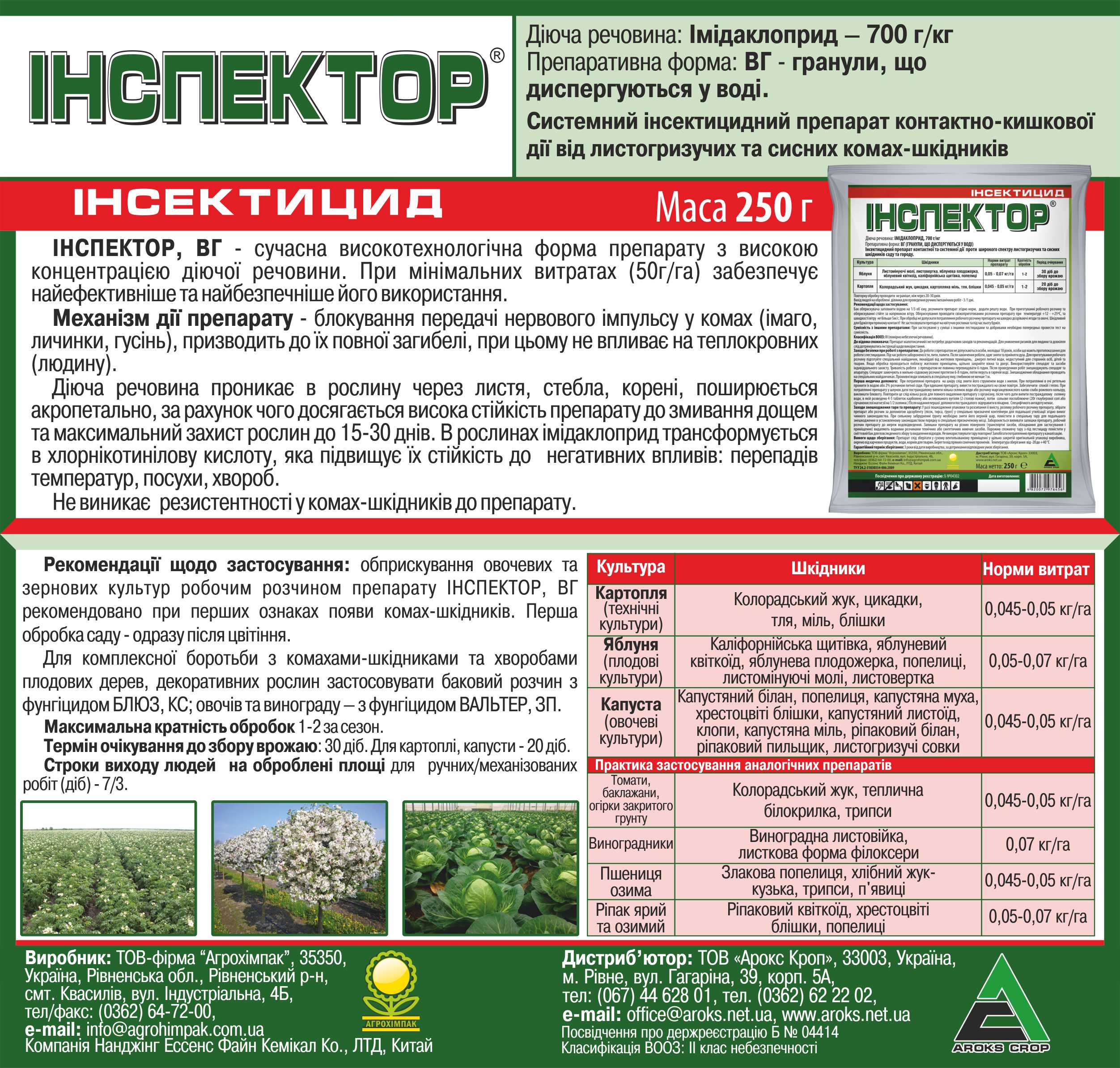 Високоефективний системний малотоксичний інсектицид кишково-контактної дії з тривалою захисною дією проти широкого спектру шкідників.