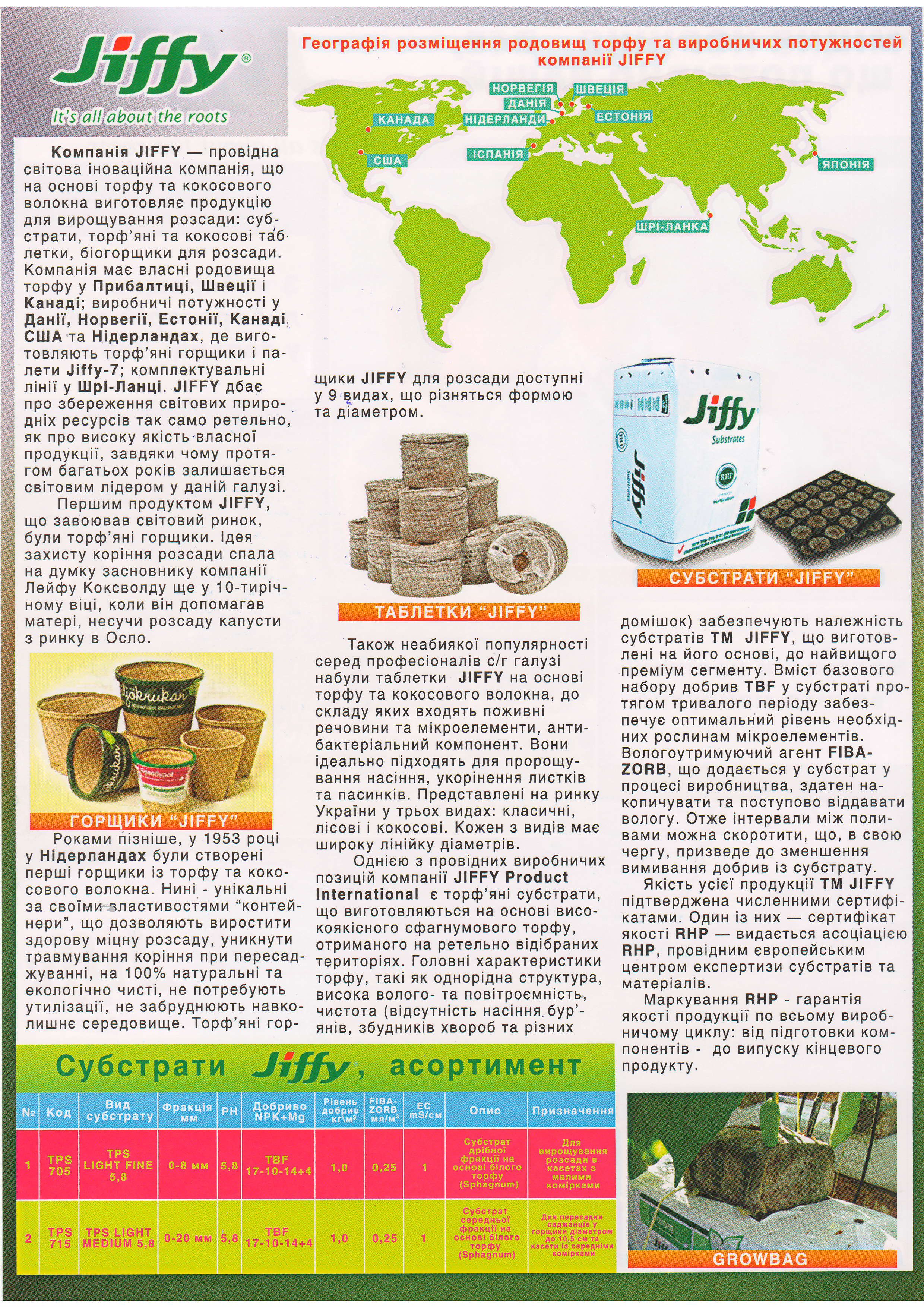 Субстрат, що входить в стандартний діапазон TPS може використовуватися для безлічі різних культур. Субстрати включають добриво Треф бази (TBF), забезпечуючи NPK і оптимальний рівень мікроелементів для рослин. Стандартний діапазон TPS пропонує суміші з перлітом та глиною. Зволожуючий компонент забезпечує швидке і рівномірне водопоглинання.